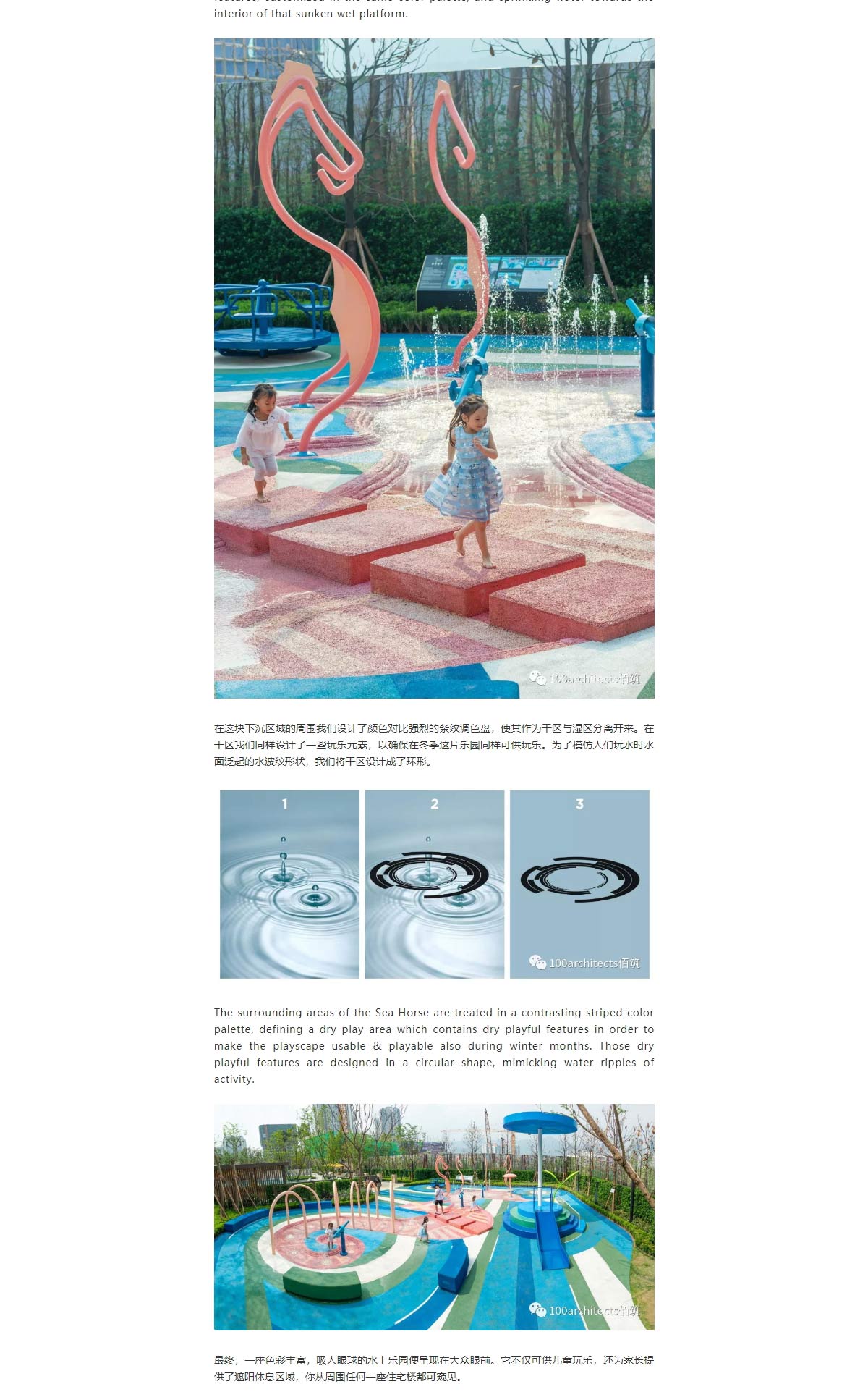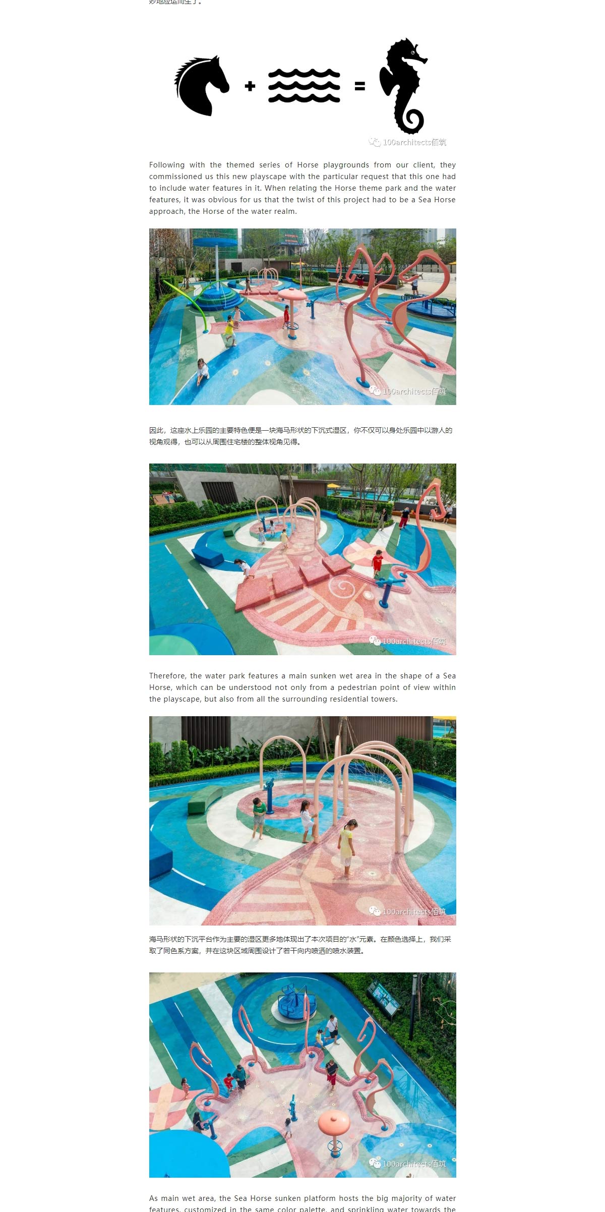 童夢(mèng)•海馬是我們最近為重慶一新住宅區(qū)公共區(qū)域設(shè)計(jì)打造的水上樂(lè)園。周圍公共區(qū)域?yàn)榫用衽溆杏斡境,加以這片為兒童打造的水上樂(lè)園,從而促進(jìn)了社區(qū)兒童之間的娛樂(lè)及社交互動(dòng)。