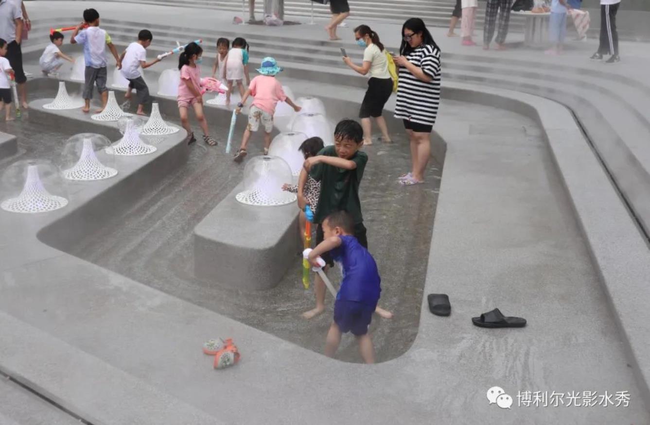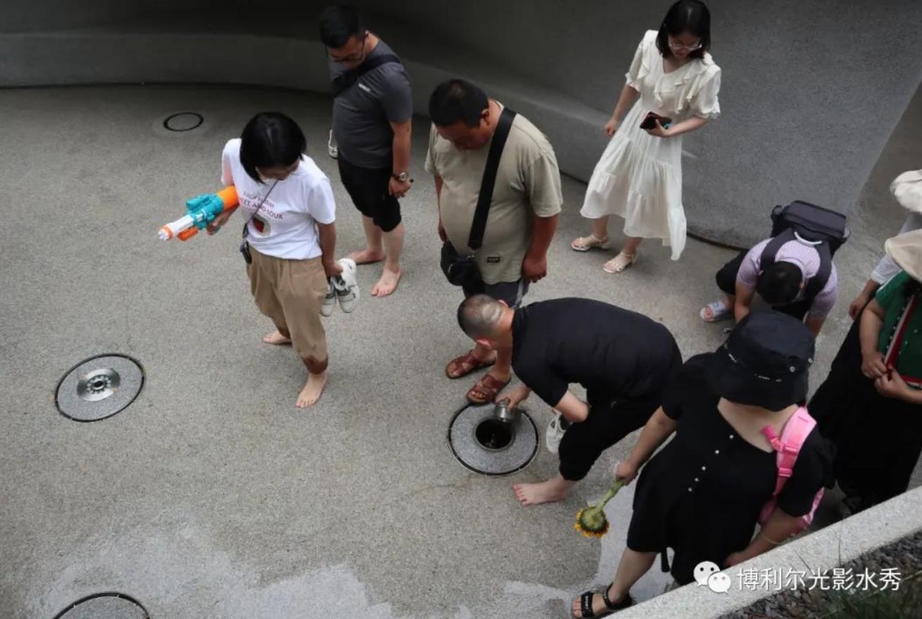 本次活動(dòng)分為三個(gè)階段,第一階段為自由探索,小朋友與水親密接觸,與水景設(shè)備互動(dòng),用水槍跟伙伴追逐打鬧。